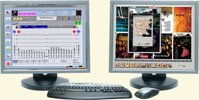 Das Druckexemplar zeigt die Produktion einer 16-Seiten-Maschine. Der gedruckte Bogen wird mit dem Referenzbogen verglichen und Registermarken, Kontrollstreifen, Dichte und Rasterpunkte werden mit Hilfsmitteln (Hand- oder Scan-Densitometer) überprüft. Eine zweckmäßige Vorgehensweise bei der Problemanalyse ist die Beurteilung der Rasterpunkte mit der Lupe. Der Grund für das Dublieren im vorliegenden Beispiel ist eine zu geringe Bahnspannung und nicht die Dichte.